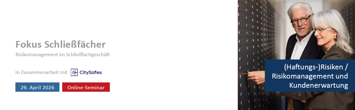Das Schließfachgeschäft steht zunehmend im Spannungsfeld von Haftung, Versicherung, Sicherheit und Kundenerwartungen. Gemeinsam beleuchten wir die haftungs- und versicherungsrechtlichen Rahmenbedingungen sowie die organisatorischen und sicherheitstechnischen Anforderungen – und zeigen konkrete Handlungsoptionen für Banken und Sparkassen auf.